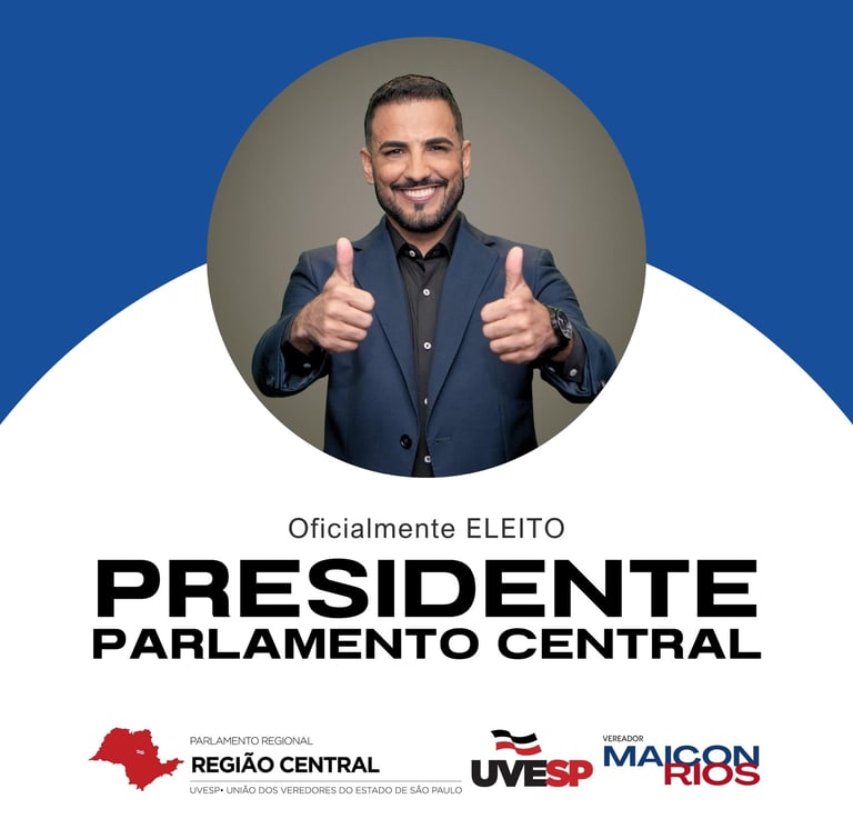O vereador e presidente da Câmara Municipal de Américo Brasiliense, Maicon Rios, foi oficialmente eleito presidente do Parlamento Regional Central, em votação realizada pelas Câmaras Municipais que integram a iniciativa. A eleição representa o reconhecimento de uma construção coletiva baseada no diálogo, na cooperação institucional e na união dos municípios da região.